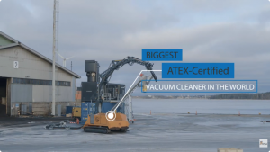 Für das sichere Verladen von explosionsfähigem Schüttgut wurde eine voll ATEX-zertifizierte, autarke Vakuumförderlösung entwickelt. Ein ferngesteuerter Roboter saugt das Material aus Lagerhallen ab.