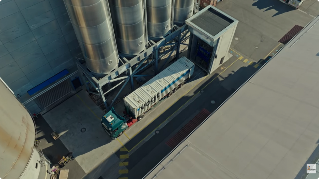 Die modulare Containeranlage fördert das Material staubdicht und sicher direkt in Silofahrzeuge. Dank der Containerbauweise bleibt die Anlage mobil und ist an verschiedenen Positionen am Standort einsetzbar.